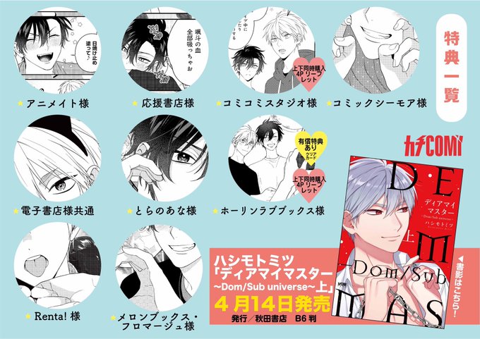 そして各書店さんでの購入特典もたくさん描かせて頂いたので気になるものがあるかぜひチェックしてください…!❤️🔥 有償特典や、上下巻同時購入特典がある書店さんもあります🎉 #ディアマイマスター