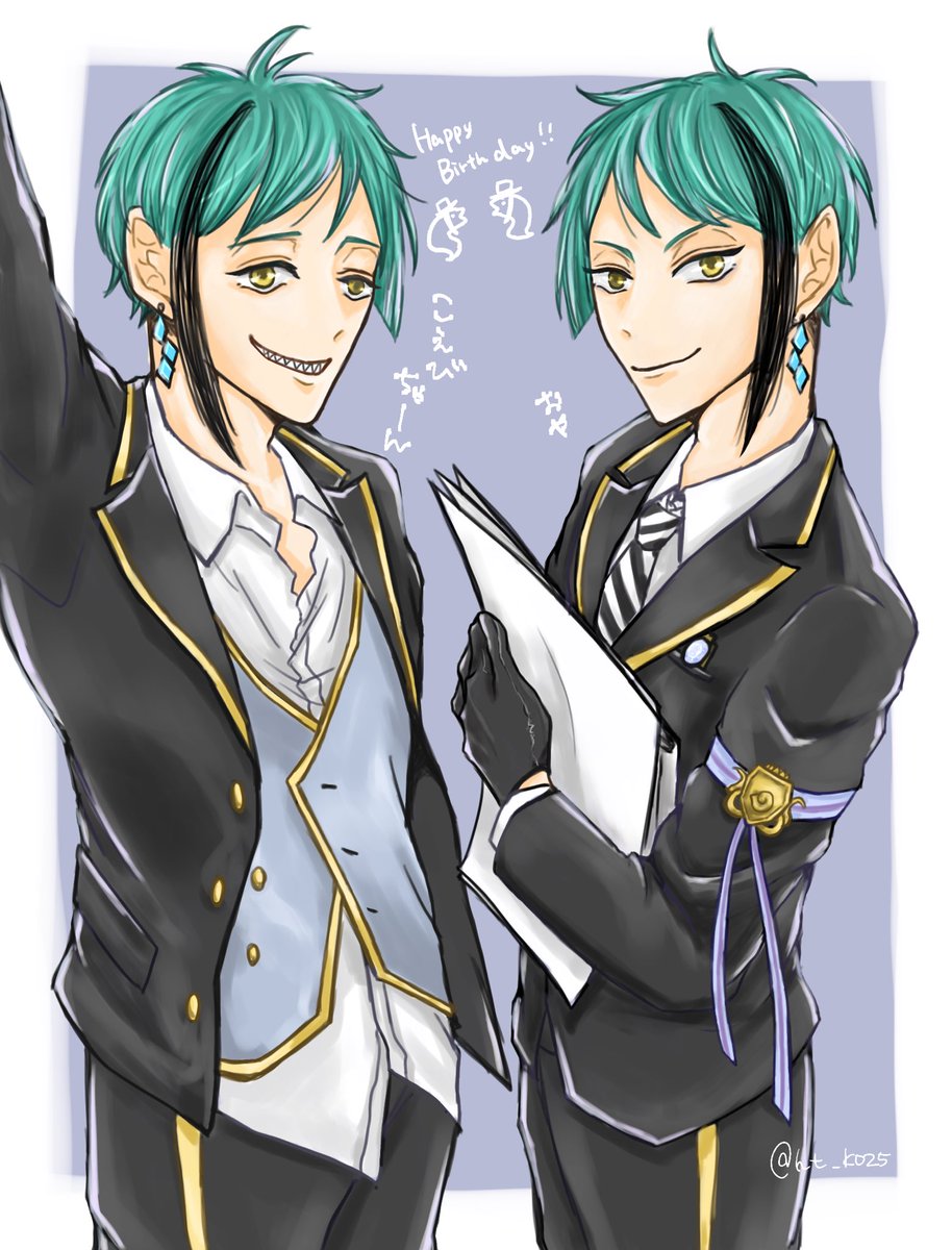 ガチャ祈願でフライングさせてくれー! #フロイド・リーチ誕生祭2020 #ジェイド・リーチ誕生祭2020 #ツイステファンアート 🦐「ジェイド先輩、フロイド先輩!誕生日おめでとうございます!!!!」