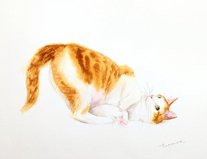 3 19 うちのぽんちゃん🐱 かまってほしいときのポーズ·͜· .* #watercolor #水彩画 #透明水彩 #アナログ絵 #art #猫のいる生活 23/05/11 01:32