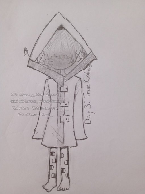 [#inktober2022 #Littlenightmares] 💛☔ "Day 3: True Colors Character: Six From Little Nightmares Six solo está jugando (。・ω・。)ノ♡