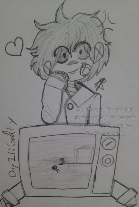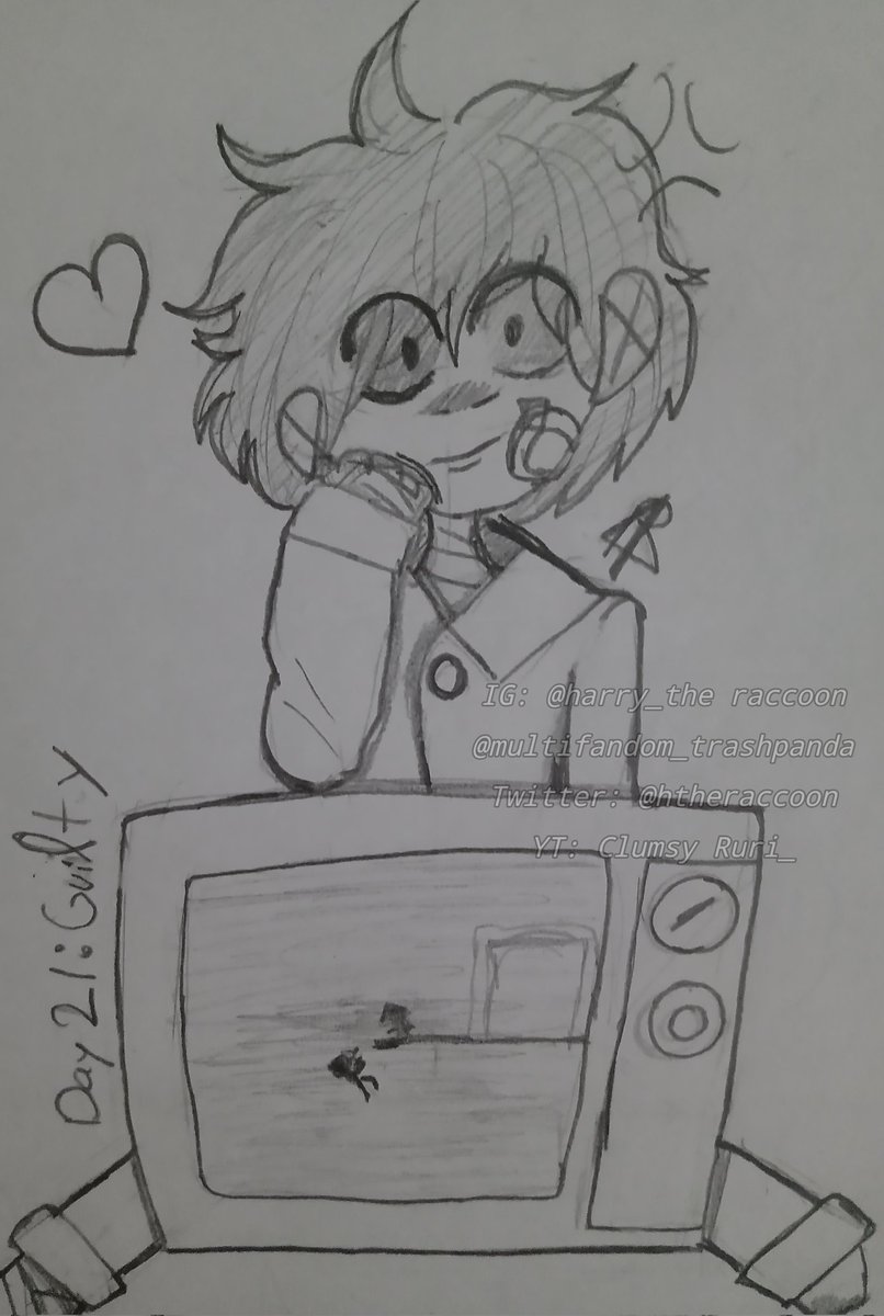 [#inktober2022 #Littlenightmares] 📺💢 "Day 21: Guilty Character: Mono From Little Nightmares Mi hijo está feliz :D Hasta te muestra un lindo recuerdo 💜