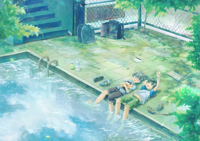 夏っぽい創作絵完成した〜🌿✨ #イラスト