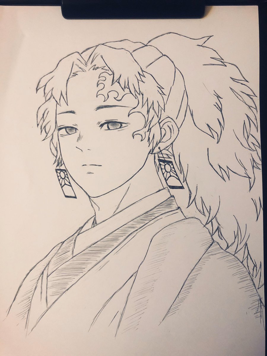 よりーちさんて綺麗 無惨様が鬼の始祖なら よりーちさんは呼吸の始祖なのに 呪術廻戦で言ったら特級なのに 寡黙で素朴で穏やかで 動く日の呼吸のエフェクト見たいなー これも後日色塗りたいから白抜き #鬼滅の刃 #鬼滅の刃イラスト #鬼滅の刃絵描きさんと繋がりたい #縁壱さん #kimetsunoyaiba