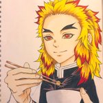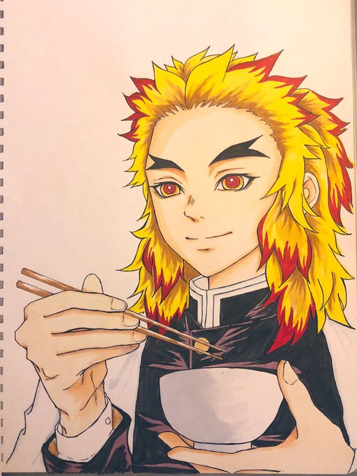 お家柄がいいからお箸やお茶碗を持つ手もきっときちんとしておられる 『そうか君は東北の生まれか』 とか言いながら隠の人とかとも気さくにご飯を食べそう あと何だろ🤔 『猪頭少年、ご飯はみんなでたべると美味しいだろ?』 とか?☺️ #鬼滅の刃イラスト #煉獄さん #鬼滅の刃絵描きさんと繋がりたい