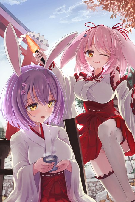 バニー巫女、バニーガールと巫女どっちに寄せればいいのか何もわからぬ。ツィヒは可愛い。 #ミストレイラスト