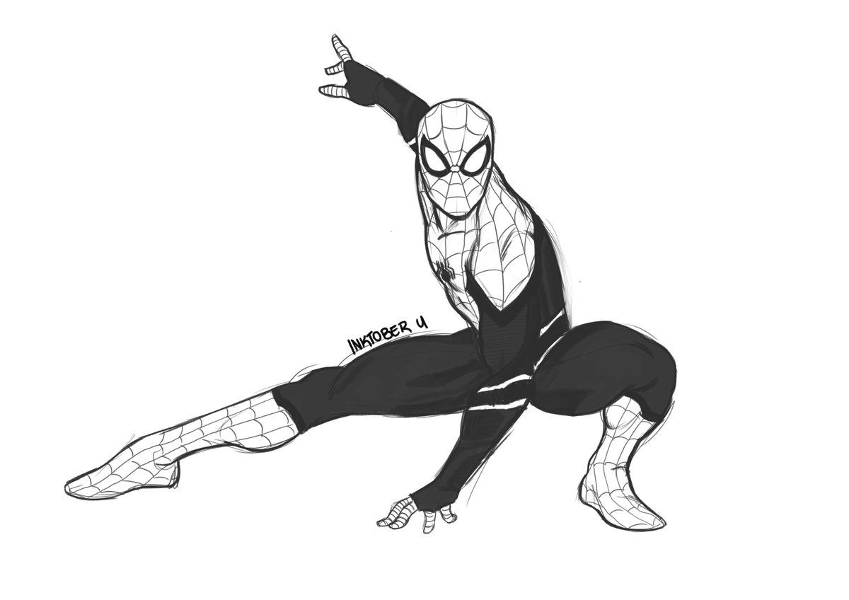 Inktober 4 - Miranha Bixo, eu sei que o Miranha é o cara que vc pensa quando vai fazer pose dinâmica, mas ele é péssimo pra treinar isso! A roupa dele tem mts detalhes que se deformam com as poses, então tentem algo mais simples tipo o Demolidor. #inktober2021 #inktober2021day4