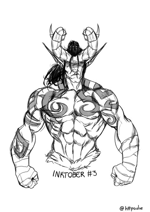 Inktober 3 - Illidan Tempesfuria Tbh, desenhar o illidan foi meio chato mas eu fiz em homenagem a uma amiga minha que gosta muito dele. Also, desenhar gente musculosa é sempre legal. #inktober2021 #Inktober #inktober2021day3 #worldofwarcraft