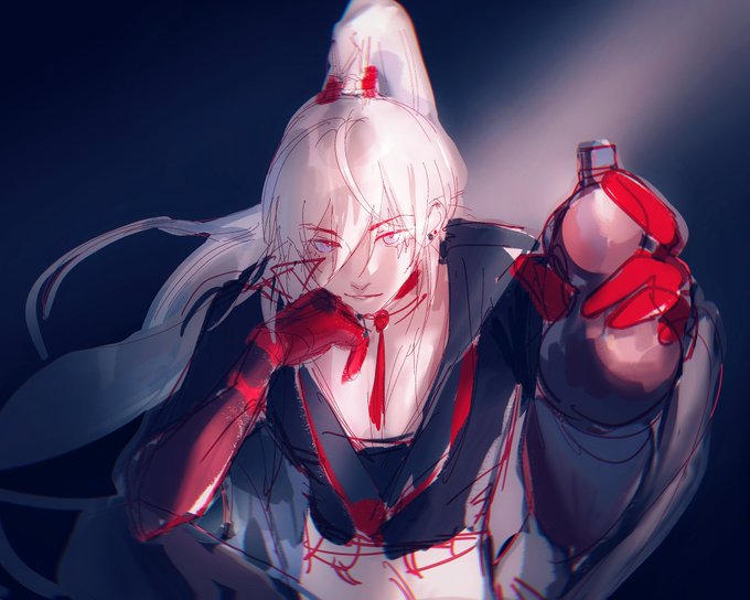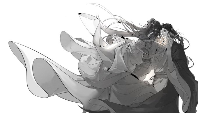 #VioletAtelier #Artchivist Taoist fuchan and Meruki (human form. Fuchan was a Taoist on the mountain before he became a swordsman. Uki,on the other hand,is a merman who, in human form, sells aromatherapy in the attic.The scales are on his hands, so he wears gloves.