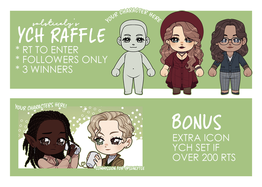 🌿 YCH RAFFLE 🌿 🌱 RT to enter 🌱 followers only 🌱 3 winners 🌱 ends august 20th 🌱 extra YCH icon set if this reaches 200+ RTs! thank you for the support over the years hehe 🙏💞