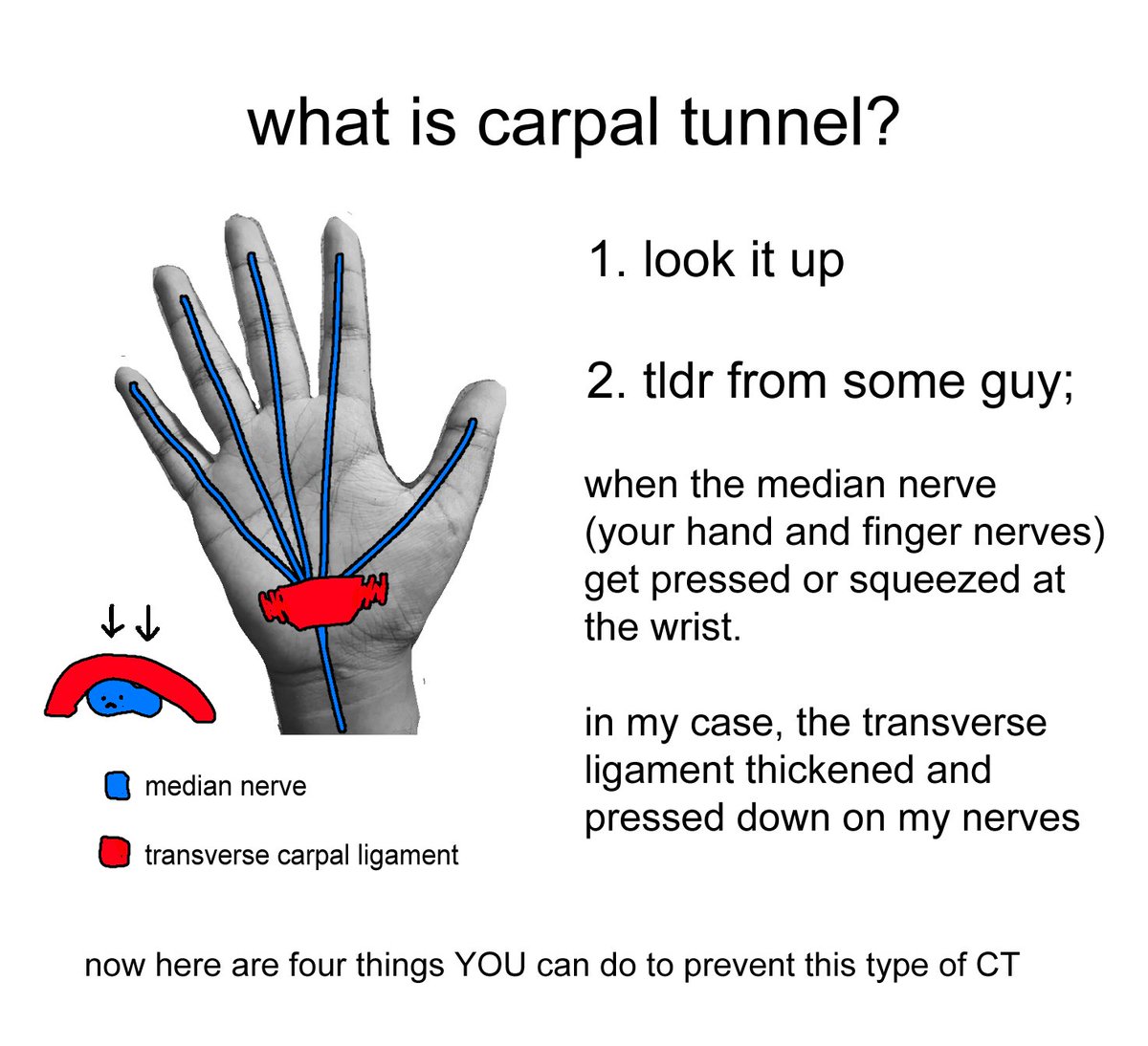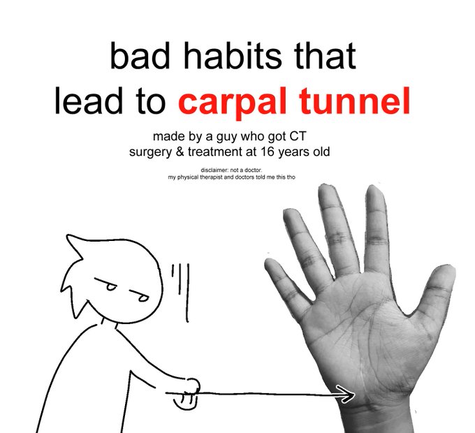⚠️BAD HABITS THAT LEAD TO CARPAL TUNNEL⚠️ A THREAD! made by a guy who got CT surgery & treatment at 16 years old. made for my art college batchmates, but i wanted to share. disclaimer: not a doctor. my physical therapist and doctors told me this but you know the drill (1/3)