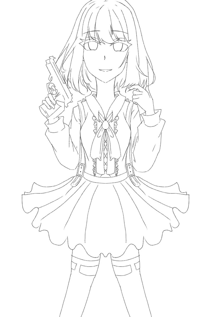 線画出しとくので塗りたい方は塗ってみてください #フリー線画 #イラスト
