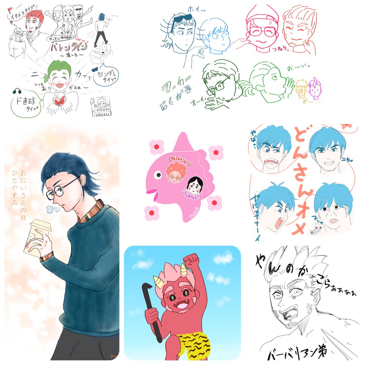 1 16 昨日兄の日だったらしいがなにか描きたいがなんも浮かばないので昔書いたアナログ絵に色塗りしたやつ〜 #兄の日 #2bropics 22/06/07 21:34