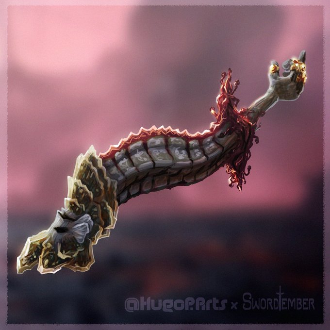 Okay, i did say no fan-art for this month, but when I saw the themes for today were "Royal" on @randomspirits list and "Snake" on @faith_schaffer's list, I HAD to to this Rykard inspired blade. The Blade of Blasphemy #swordtember #ELDENRING