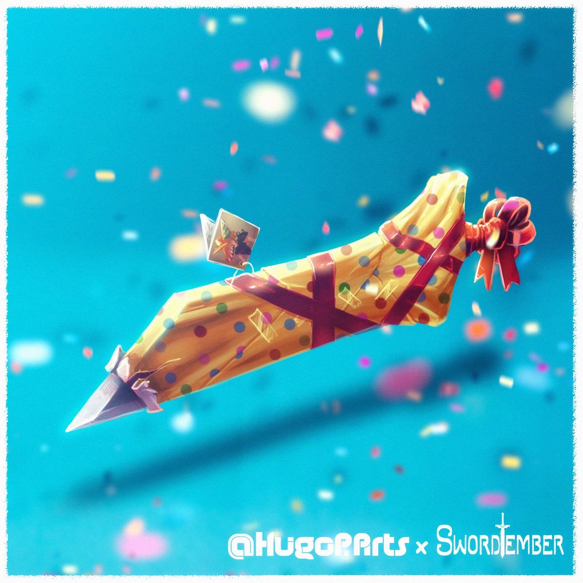 Another #Swordtember stream, another set of swords! A #Birthday gift-wrapped sword and a #Cosmic black hole Supernova! Woot woot Catch me streaming them at: twitch.tv/hugoparts (6pm EST daily) #conceptart #swordtember2022