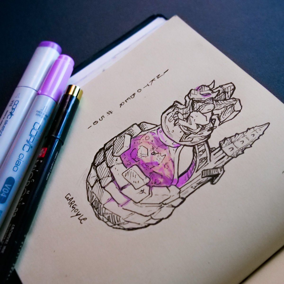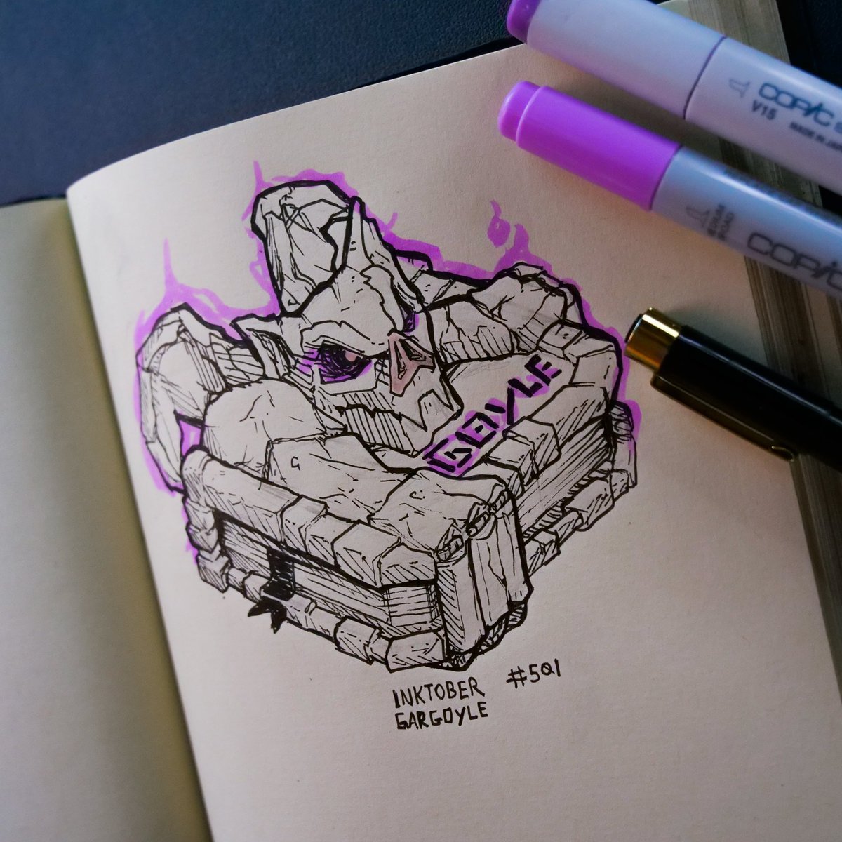 #inktober2022 going strong! This year I’ll do magic books/tomes/scrolls or magic potions! For Gargoyle I ended up doing both!#inktober #InkToberDay1 #inktober2022day1