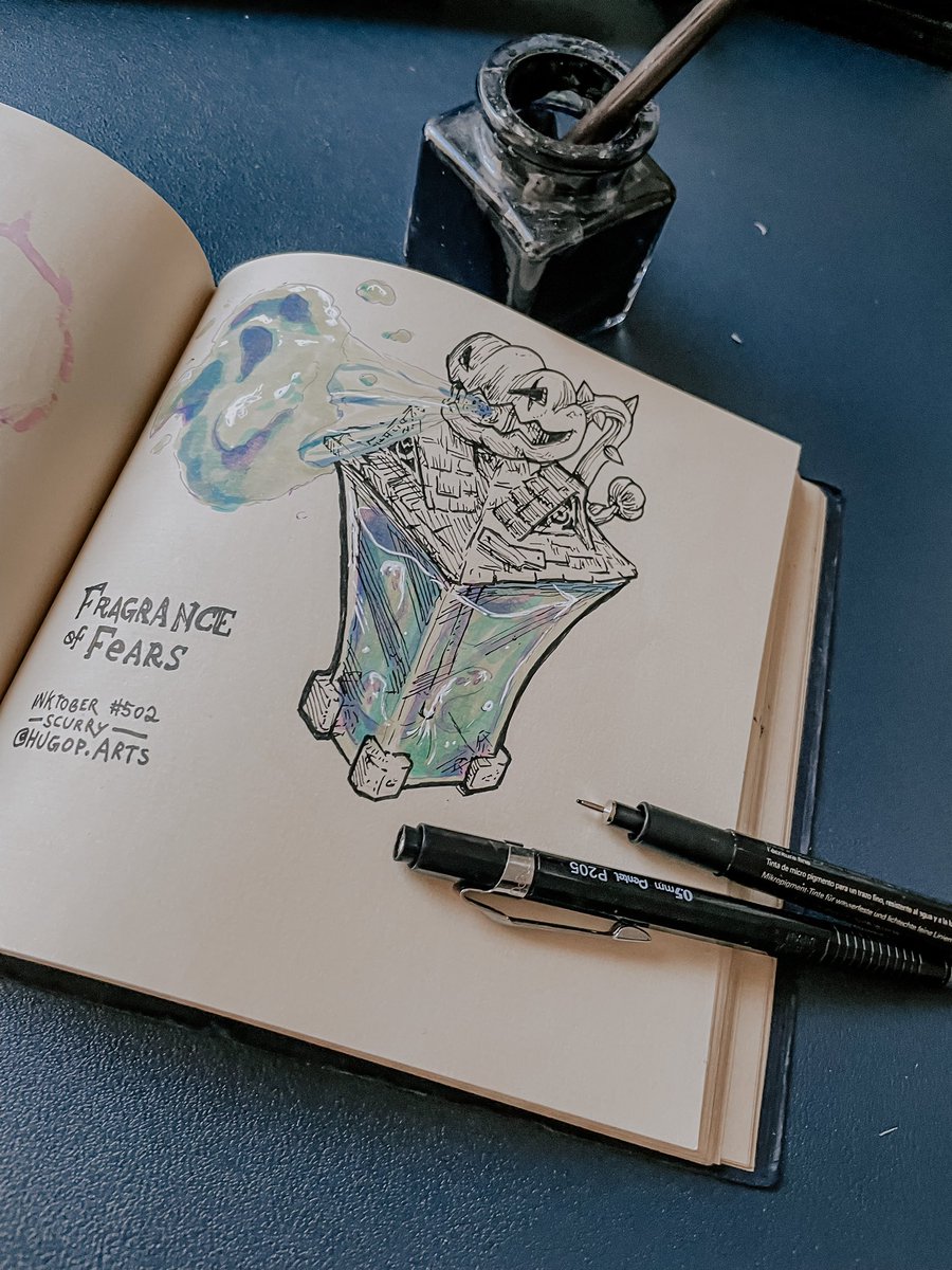 #inktober2022 day two: theme of Scurry! A magic perfume that inflicts your foes with fear, sending them scurrying away. #inkart #inktober #inktober2022day2 #inktober2022scurry