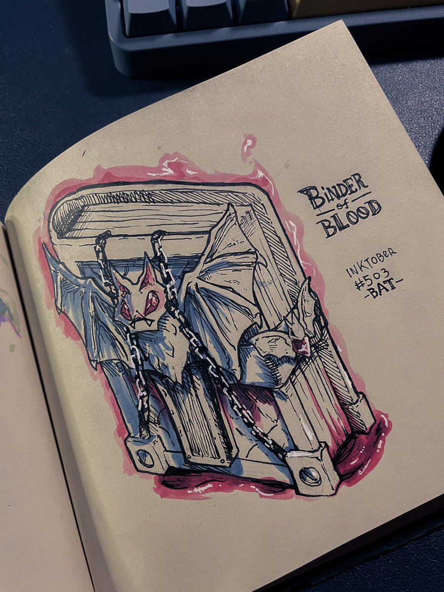 Ope, as always almost forgetting to drop my #inktober of the day on twitter. Today is a tome or rituals and incantations surrounding the force of life and blood. #inktober2022 #inktober2022day3 #inktoberday3 #inktober2022bat