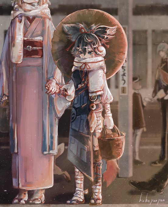 【刀剣乱舞/にっかり青江/こんのすけ】 . . おやおや、君も暖まりに来たのかい? . .