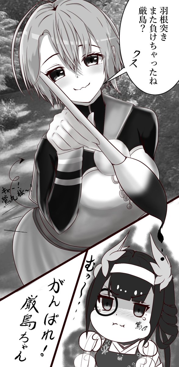 羽根つき対決に敗れた厳島… よほど悔しかったのか…普段の凛々しい姿とはかけ離れた子供じみた一面を見ることができた… 可愛いな…