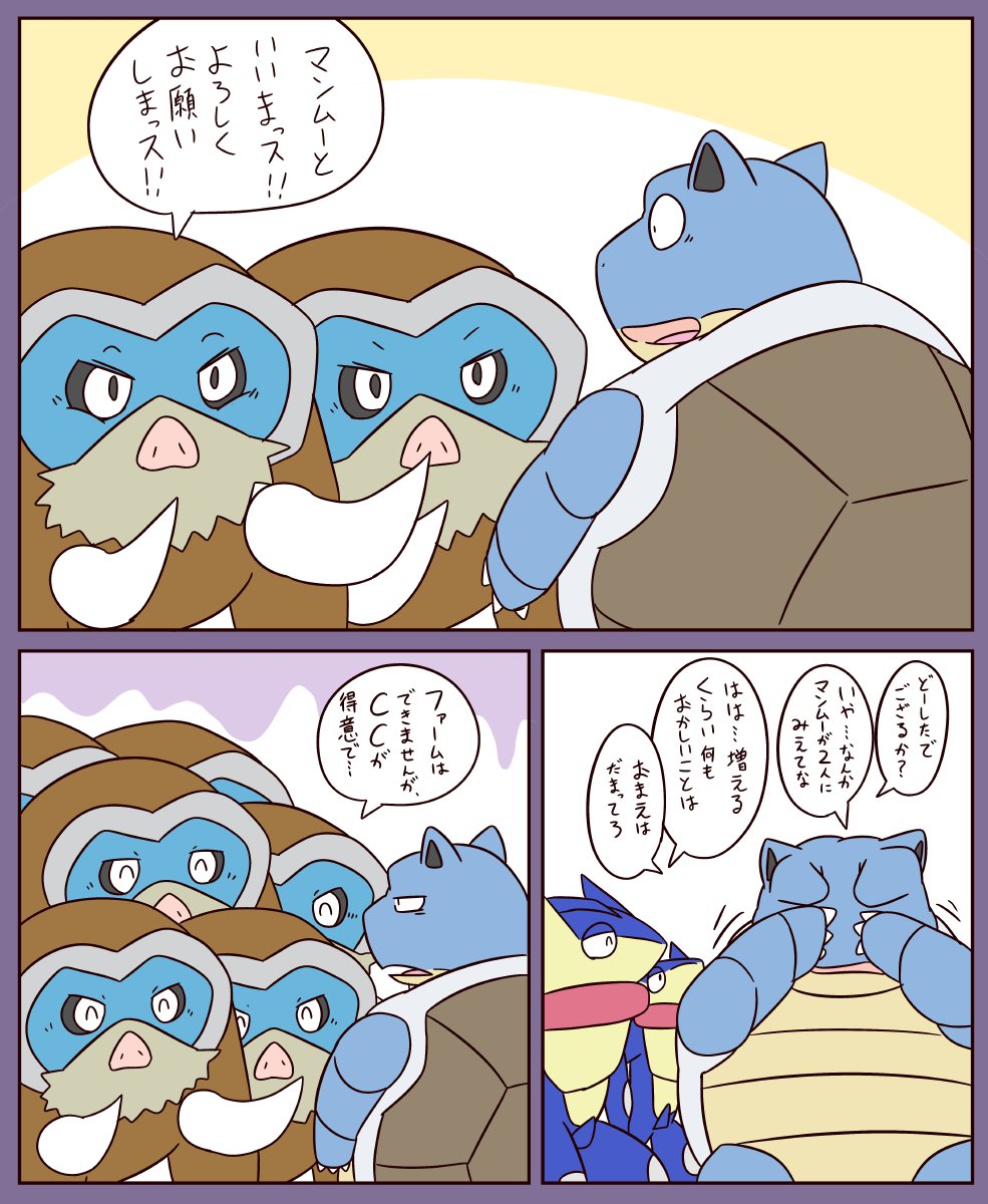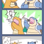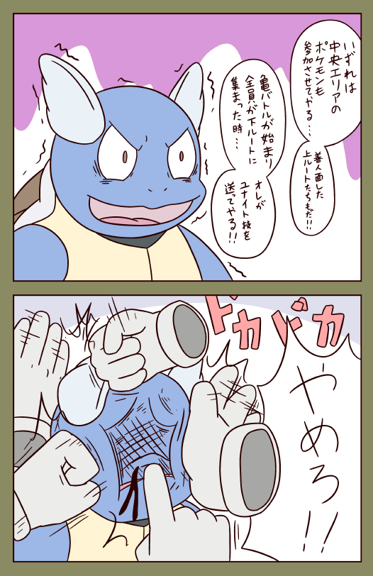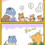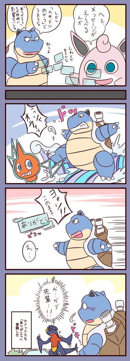 「ぼ、ぼく!フカマルくんに似てるって!わ~い、ぼくも将来ガブ先輩みたいにカッコよくなれるのかな~!」 と調子に乗るホゲータに御三家の現実をわからせる亀先輩