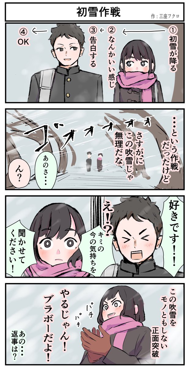 お題:初雪 #ヨンバト #4コマ漫画 #4コマ #漫画が読めるハッシュタグ #4コマR