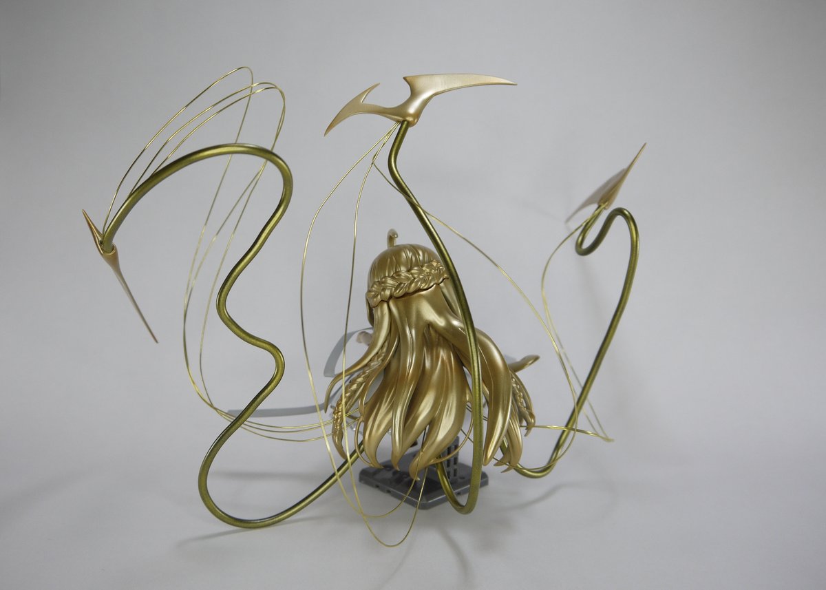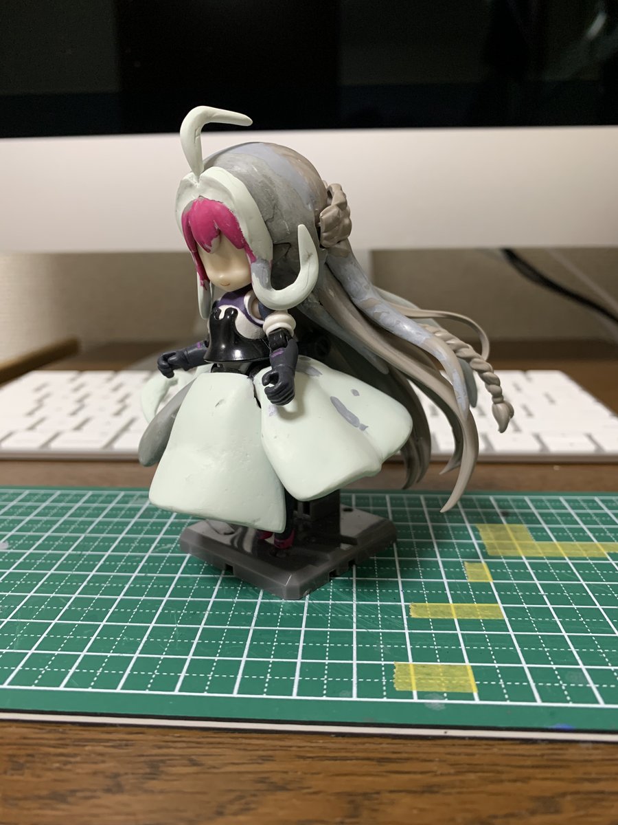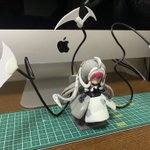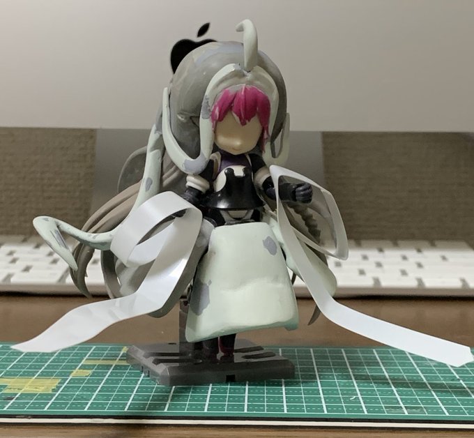 スカートの謎布は0.1mmプラ板を熱で曲げて作成。スカートへは手芸用ピンで刺して接続、ある程度自由に動きます。 宝石アクセサリはネイルアート用のスタッズとUVレジンです。 #デスクトップアーミー