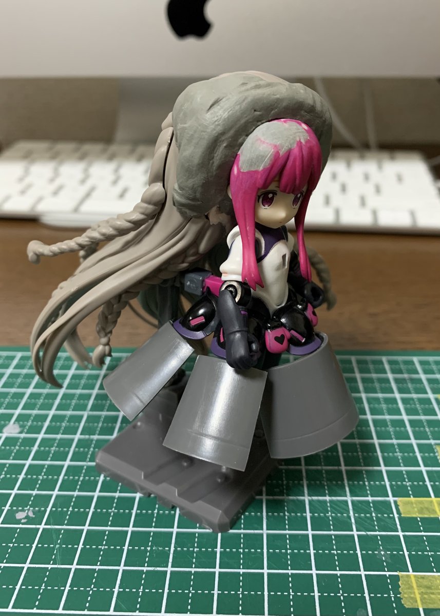 メリッサベルちゃん最大の特徴である長髪は、フィギュアライズことりちゃんの後頭部を丸ごと移植。中古屋で手に入ってラッキーでした。もう少しコンパクトでも良かったんですが雰囲気重視で。 #デスクトップアーミー