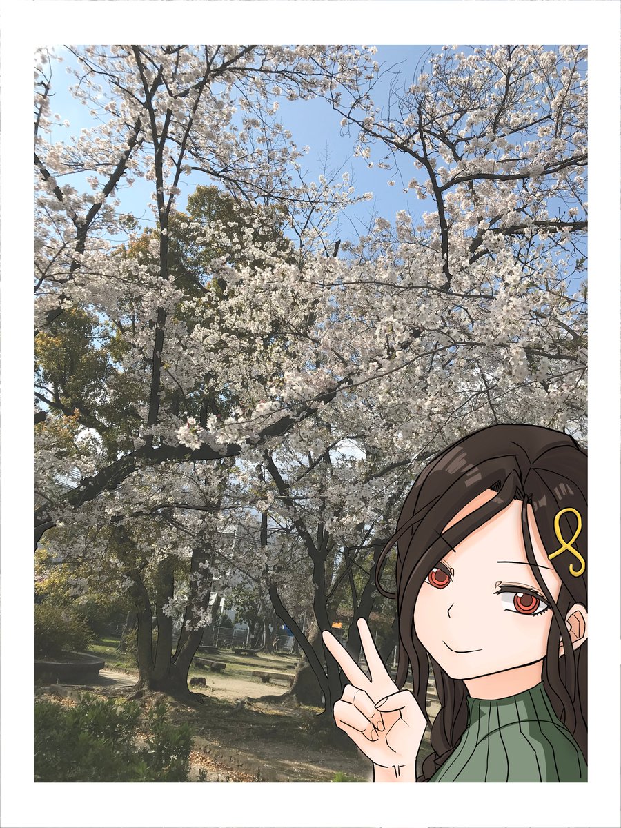 自撮りか誰かに撮ってもらったのかはわからない。 #巴絵