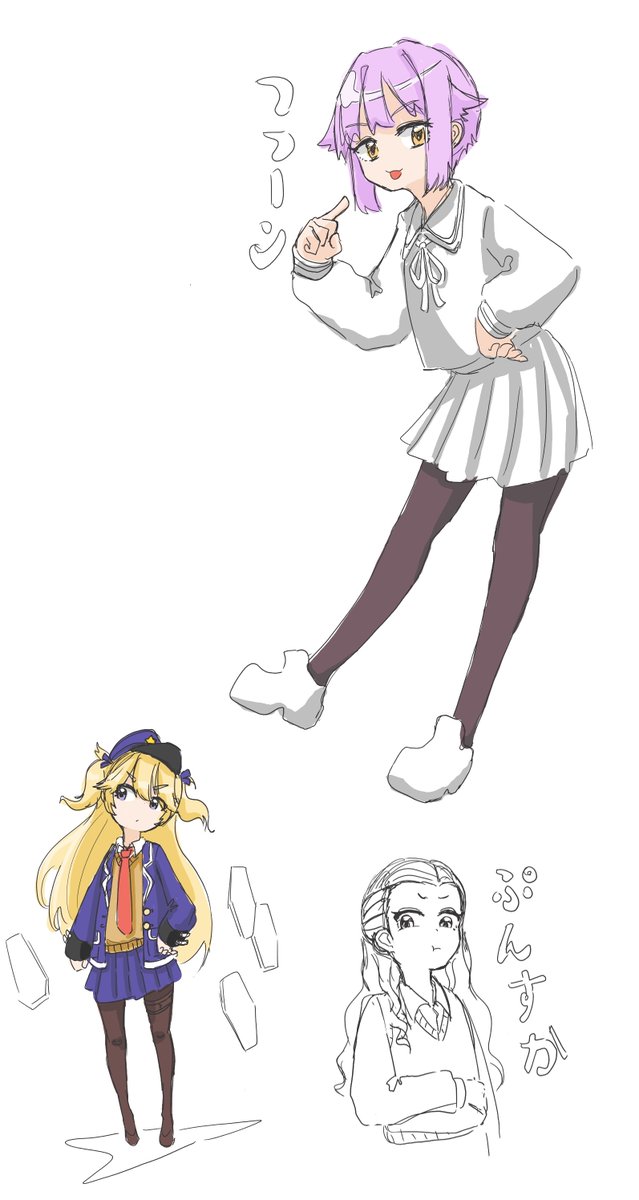 今日は絵チャで幸子と関ちゃんとスーパーショーティちゃんを描いたよ。