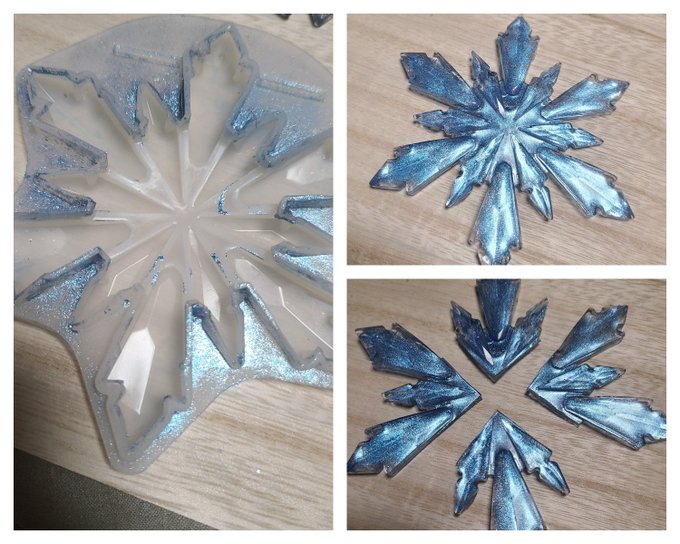 エルサの靴こんなふうに作ったよっていうメモ ❄️のシリコンモールドでソフトレジンで複製→鋏でカット 土台をグラデーションに塗装→足に当たらないか様子をみて適当に配置していく→完成 使用したのはレジン道さんの刹那です(これが試した中で一番柔らかかった) 歩行する時は別の靴の方が良さげ