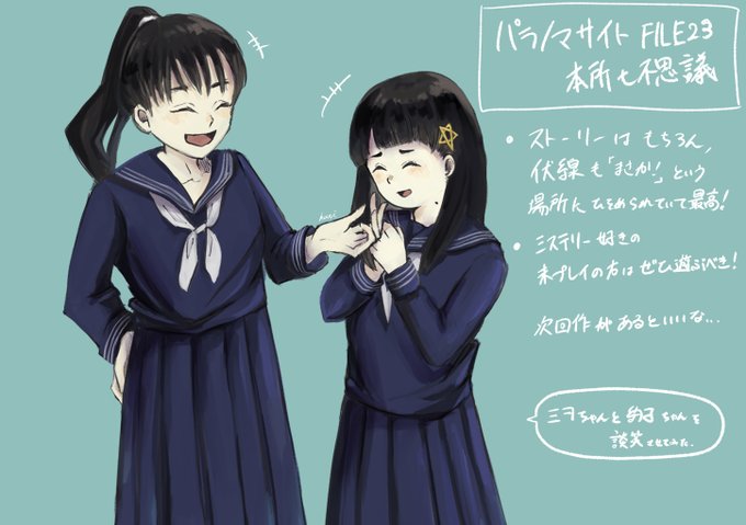9 24 パラノマサイトFILE23本所七不思議 面白かった!! クリア記念に、ミヲちゃんと約子ちゃん描いてみた。 #パラノマサイト #イラスト #ファンアート 23/07/01 15:17