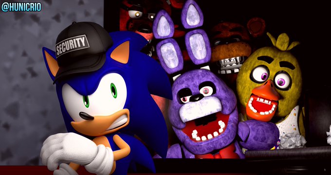 Well maybe doing a security job at this Pizza place isn't the smartest idea... #Sonic #SonicTheHedgehog #FNAF #FiveNightsAtFreddys #Blender #Blender3D #sonicfanart #fnaffanart