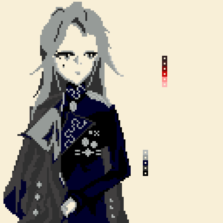 0 2 プロイセン軍人モルトケの独特すぎるコートの羽織り方を真似てみました! モノクロver,色付きver #pixelart #ドット絵 #オリキャラ 23/07/12 15:43