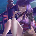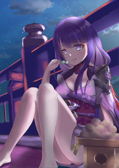 0 4 #原神 #雷電将軍 #イラスト #2次創作 「雷電将軍の月見 稲妻城にて」 2パターン 22/10/06 23:15