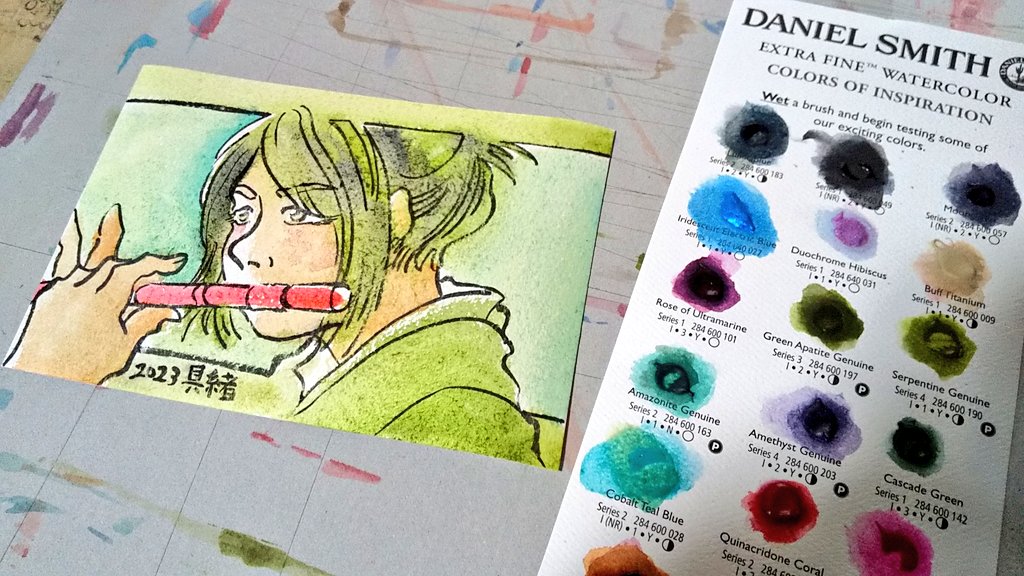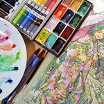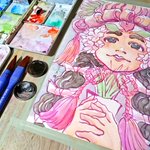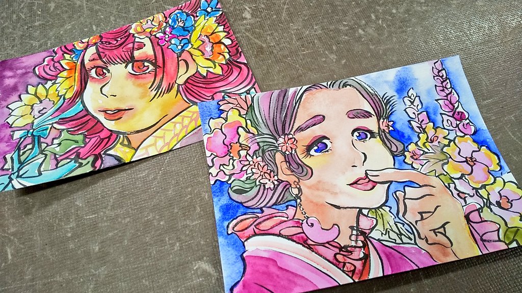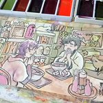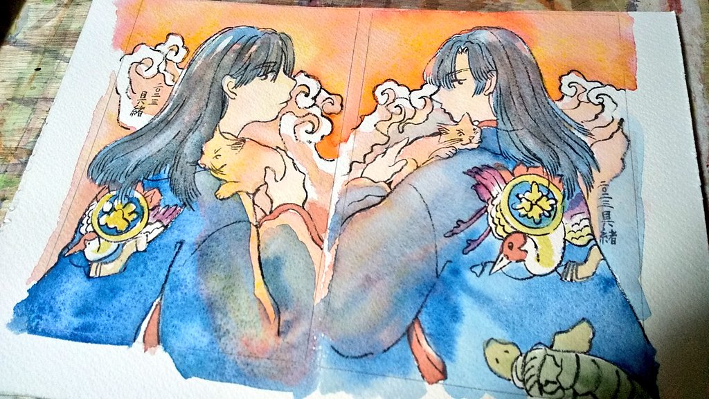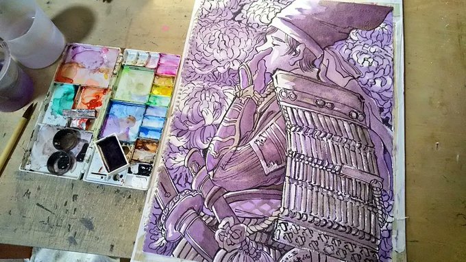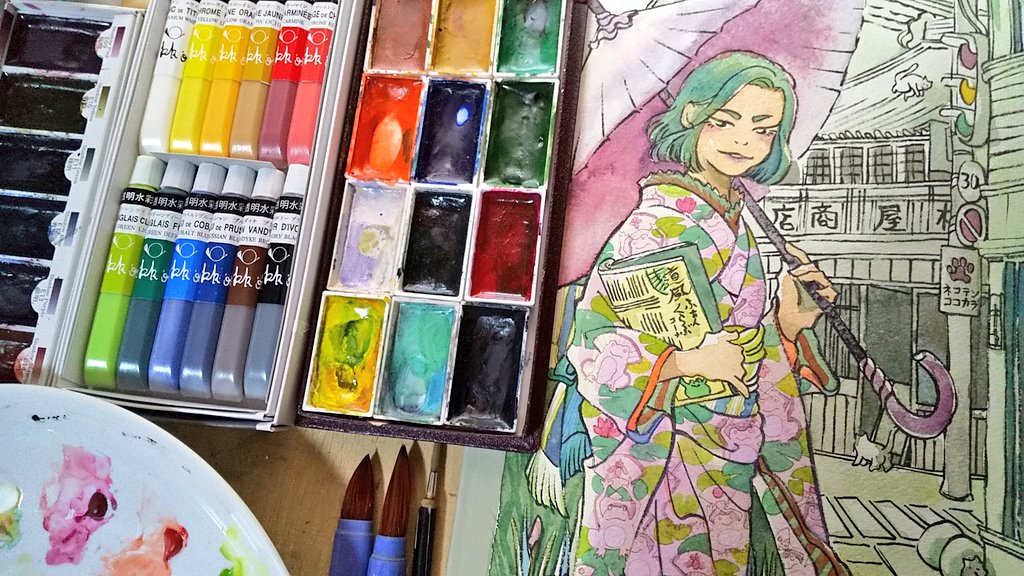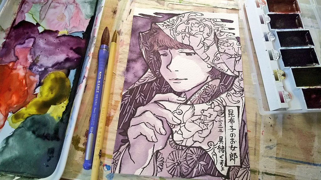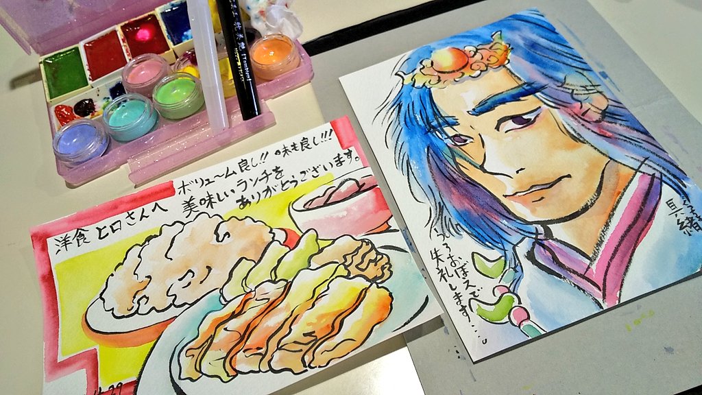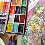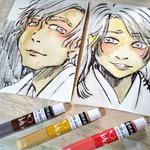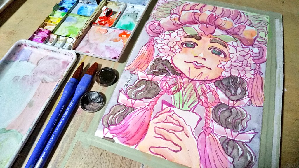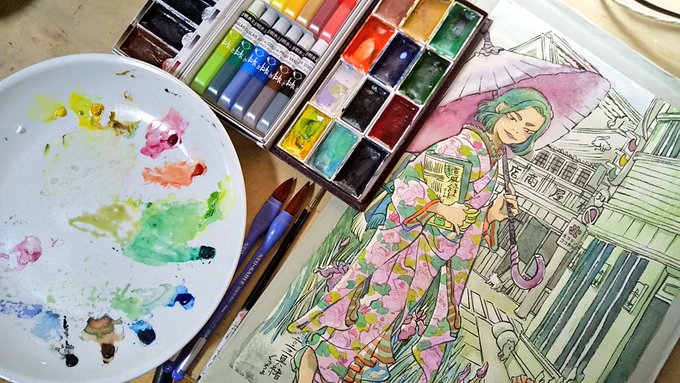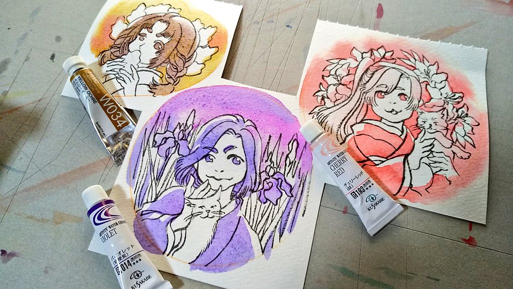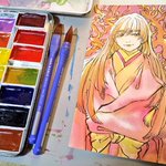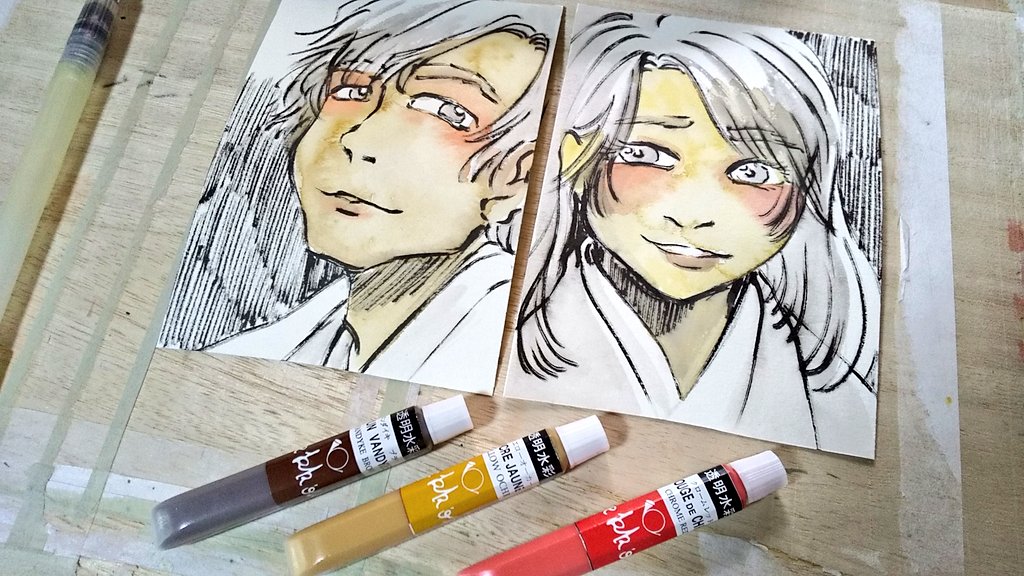 #水彩で肌の塗りどうしてる #透明水彩 タグ作りましたので水彩使いの皆様のそれぞれのお肌の色選び、塗り方、こだわり等色々と教えて下さいませ🙇 私はイエローオーカーや顔彩の黄土色をベースに黄、赤系の絵の具少しずつ混ぜて調整しています。それを塗って乾ききる前に頬の赤み足しています。