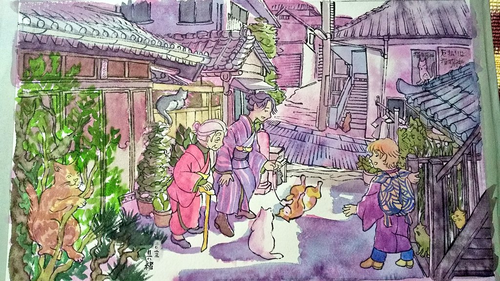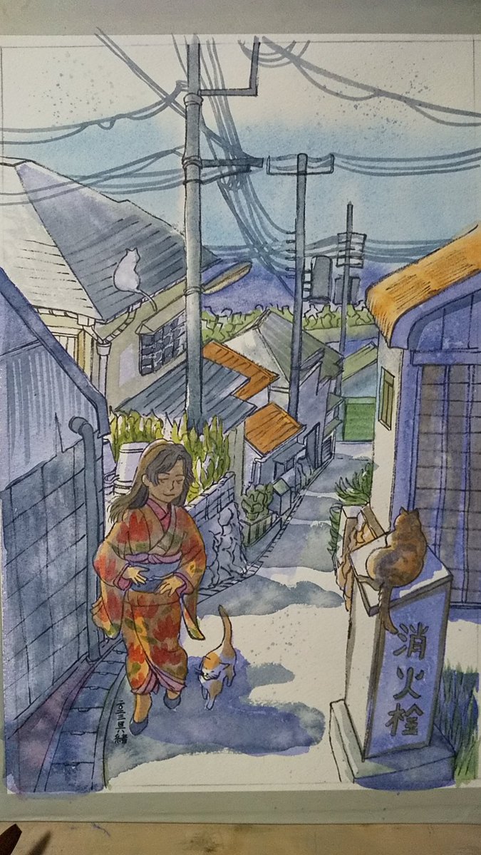 #ゴールデンウィークSNS展覧会2023 愛しき郷土のくらし。 顔彩や透明水彩などで千葉県東総地域の景色や祭礼などを題材にお絵描きしています🐈️ 町並みのどこかに猫を仕込むのが好きです。 #ふさのはじっこ