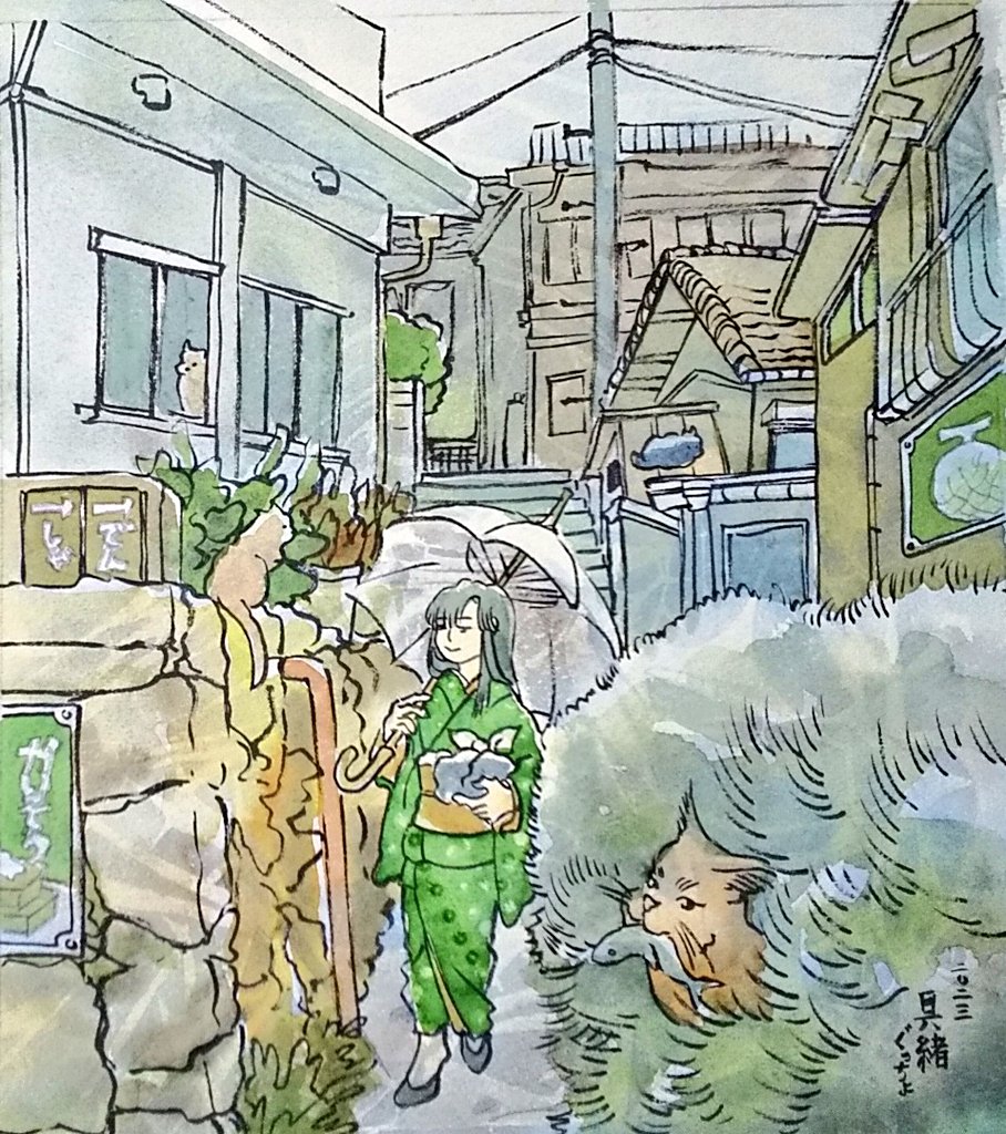 イチマツさんのタグ企画 #一次創作絵師拡散フェス03 に参加します🐈️ 皆様のお心に沁みわたるような作品を心掛けています。 千葉県のはじっこの地域の祭りや風景をモチーフに顔彩や透明水彩で絵を描いています🎨