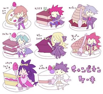 チャンピオンずデフォルメして隣にケーキ描いてみました #ポケモントレーナー版深夜の真剣お絵描き60分一本勝負