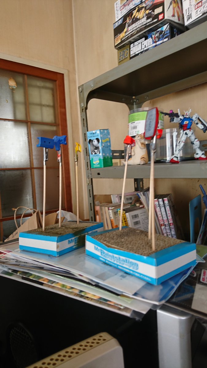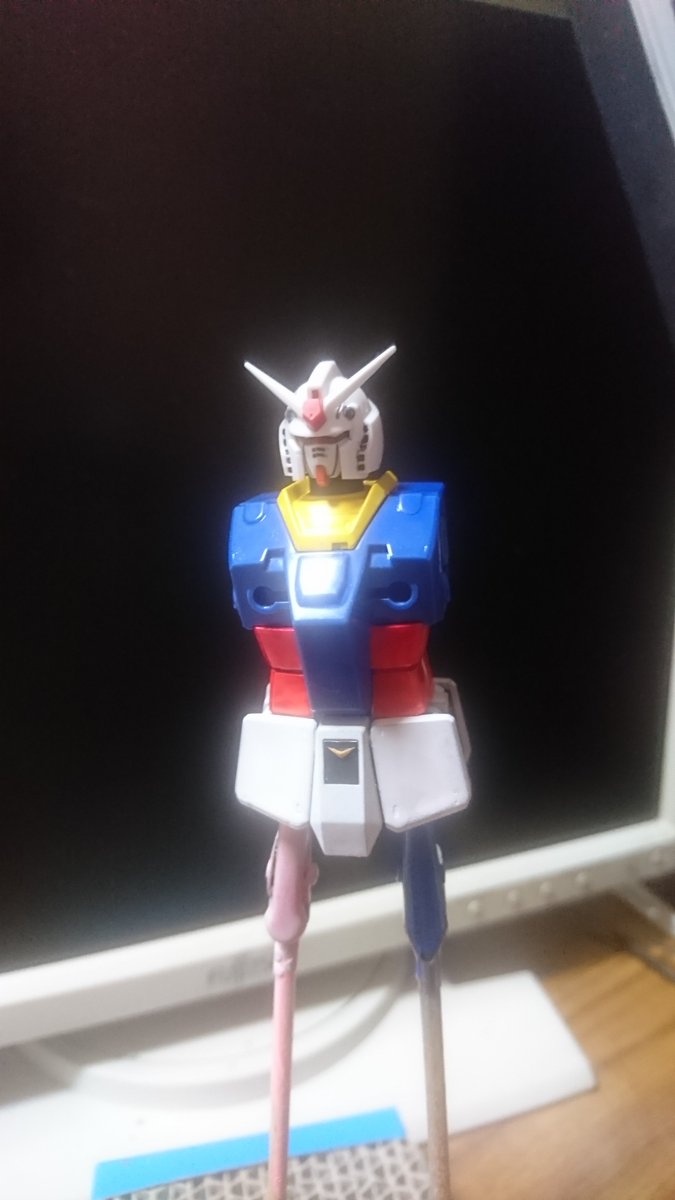 0 1 #ガンプラ #ウソダム #自己満ダム 現在製作途中。 頭部:局地型ガンダムの頭 胴体:ジムガードカスタム。 腰:ジムインターセプトカスタム。 すっげー下手糞です。缶スプレーでテケトー塗装。 素直に作れば良いのに、何故か無謀なミキシング。 20/04/01 21:42