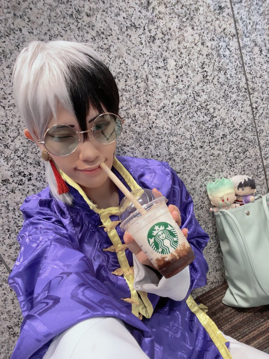 【Cosplay】 「🥤フラペまいうー!!🥺♥️」 「……(視線を感じる……)」 「……あっ」 「んー、1口だけね(*´˘`*)♡」