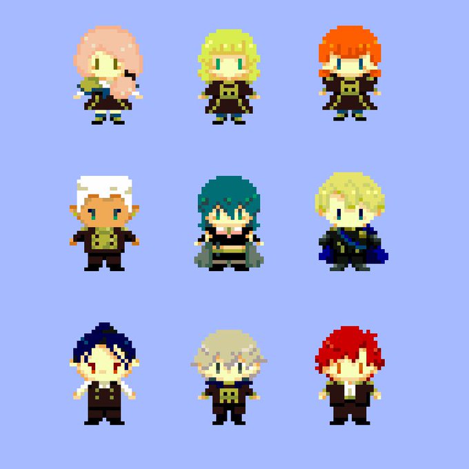 ディミレスに引き続き、ドット絵で描いてみた青獅子組。作ってて楽しかったー GIFアニメにも挑戦したい。 #FE風花雪月 #pixelart