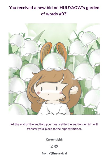 🔥 On AUCTION now 🔥 ////// 24 hours left /////// End : 23.02.23 12pm(UTC+7) 𝑯𝑼𝑼𝒀𝑨𝑶𝑾'𝒔 𝒈𝒂𝒓𝒅𝒆𝒏 𝒐𝒇 𝒘𝒐𝒓𝒅𝒔 🪻 #01 Campanula 🪻 • 1/1 illustration formfunction.xyz/@huuyaow/2qdyd… 🐰🌕 #HUUYAOW #Illustrator #イラスト #NFT #NFTartist #formfunction #SolanaNFT #Solana #SOL