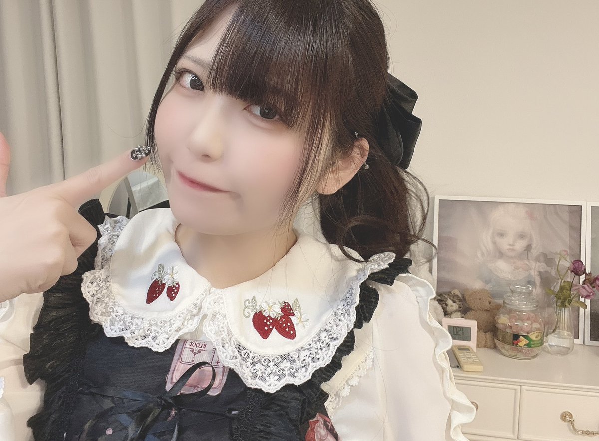 このワンピースが自分で持ってる洋服の中で結構お気に入りでブラウス無しでも着てみたんだけどもしかして無しの方が可愛いかもと気付いてしまった 色味も肩のフリルも果物もどれもこれも好きなの🍇🍐