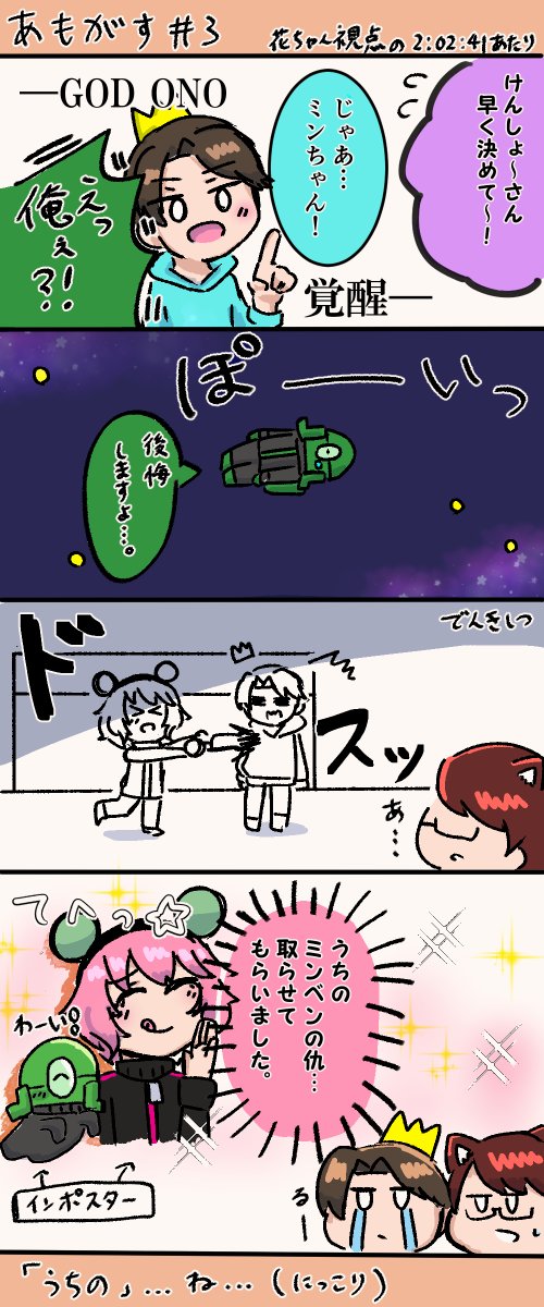 遅くなりましたがAmong us 回お疲れ様でした~!という絵を描きました✌ #花江夏樹と小野賢章 #bintrollFA #リモー絵先生 #一般男性FA #正一さん #後藤ヒロキさん twitter.com/huwarinn/sta…