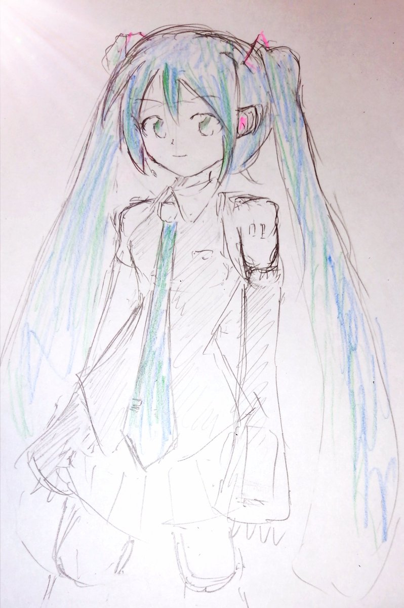 #HatsuneMikuDraw タグ便乗 僕のアブノーマルでミクさんの足を無かったことにしました 体描く練習しないと...