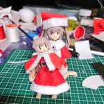 久々の新しい子「スピカ」 制作イメージは「ドレス鎧を着た騎士」 以前試したキラキラ輝くパーツをクリアコーティングする手法を全体に使ってみたのでキラキラして綺麗。ついでにクリア蛍光塗料も塗ってあるのでブラックライトで本気モード的なお遊びもできる。 #DTA #デスクトップアーミー