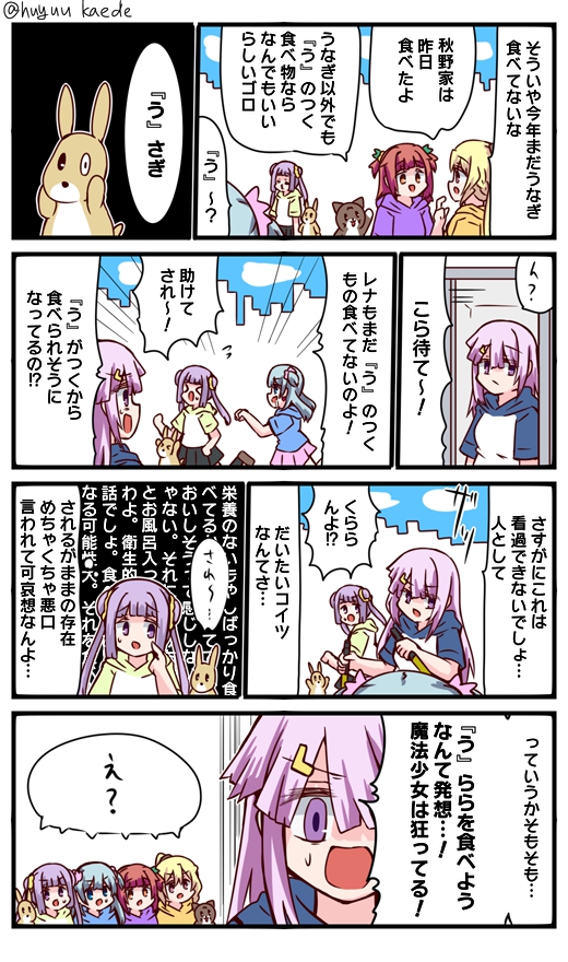 かもれと学ぶ「狂った発想してんのおまえだろされ…」『う』のつくものについて描きました。 三人ともお誕生日おめでとう #秋野かえで生誕祭 #水波レナ生誕祭 #十咎ももこ生誕祭