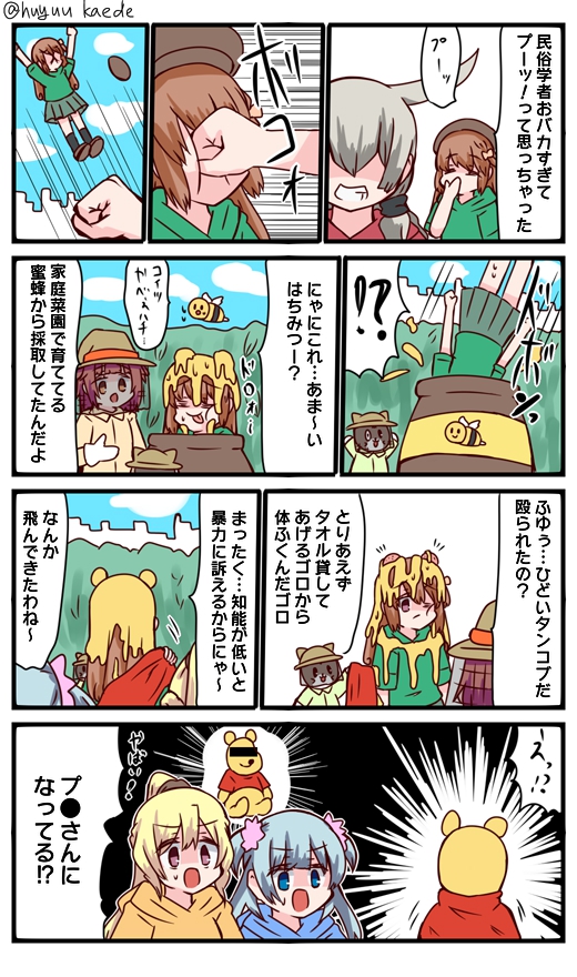 かもれと学ぶ「プーって言ってたやつに相応しい末路ですの」8月3日ははちみつの日なのではちみつについて描きました。ちなみに1コマ目のセリフのプーは笑い声なので某クマとは一切関係ありません 三人ともお誕生日おめでとう #秋野かえで生誕祭 #水波レナ生誕祭 #十咎ももこ生誕祭