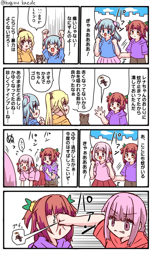 かもれと学ぶ「ファインプレー」最近は夏でもあんまり蚊みないよな~なんて思ってたら足刺されたみたいでクソかゆい 三人ともお誕生日おめでとう #秋野かえで生誕祭 #水波レナ生誕祭 #十咎ももこ生誕祭