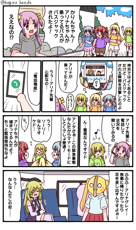 かもれと学ぶ「バスジャック」十咎先輩、水波先輩、かえでちゃん、ゴロジロー、アリナ先輩!みんなでアリナ先輩を助けるの! 三人ともお誕生日おめでとう #秋野かえで生誕祭 #水波レナ生誕祭 #十咎ももこ生誕祭
